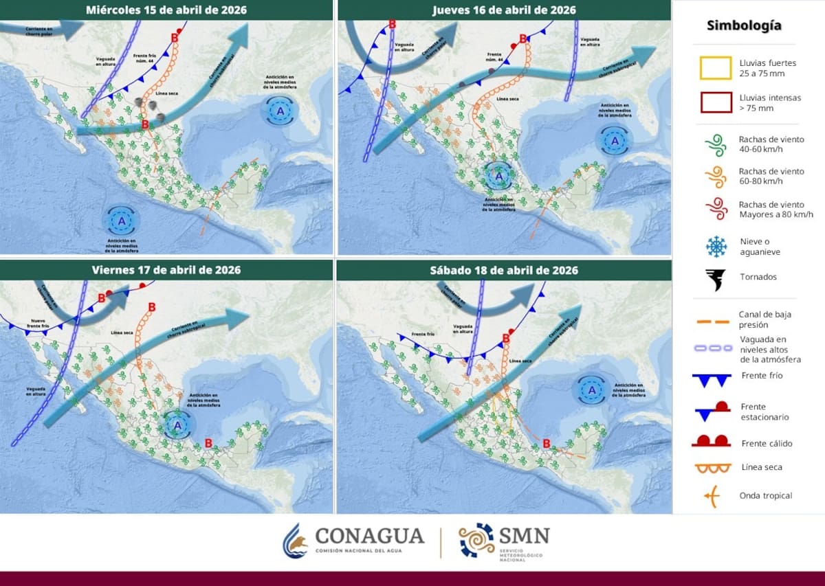 De acuerdo con el pronóstico, un nuevo sistema frontal podría acercarse al Norte de México los días 22 y 23 de abril.