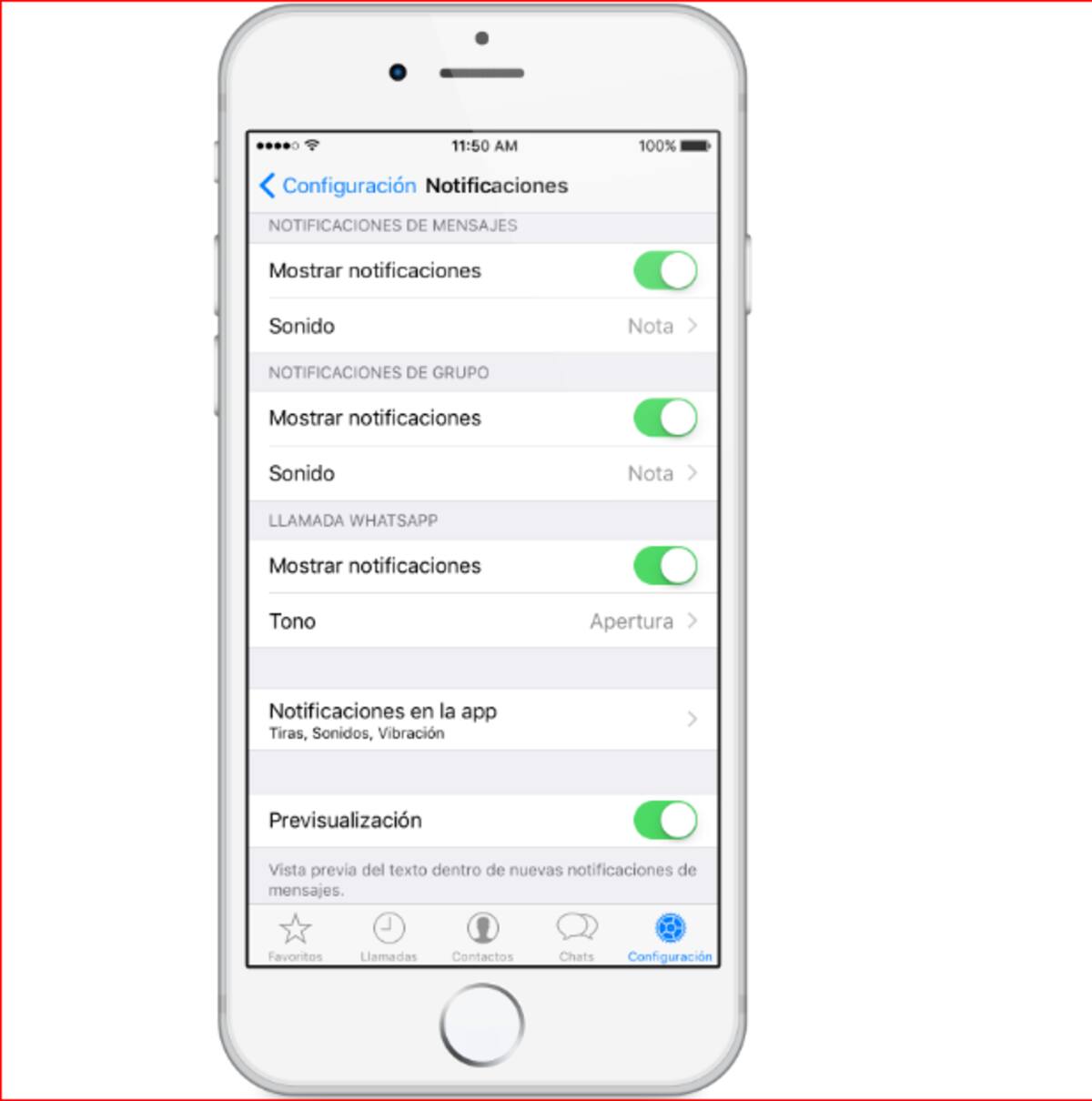 Por favor, asegúrate de configurar tus notificaciones en los ajustes de WhatsApp y de tu iPhone: