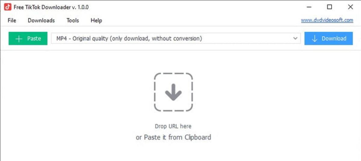DVDVideoSoft: Esta herramienta de Windows es una solución ideal para cuando desea descargar varios vídeos de TikTok en su máquina de escritorio. También es muy versátil y le permite guardar en una variedad de formatos, incluidos MP4, MOV y MP3. Todo lo que necesita para comenzar es arrastrar y soltar una URL de TikTok directamente en la pantalla.