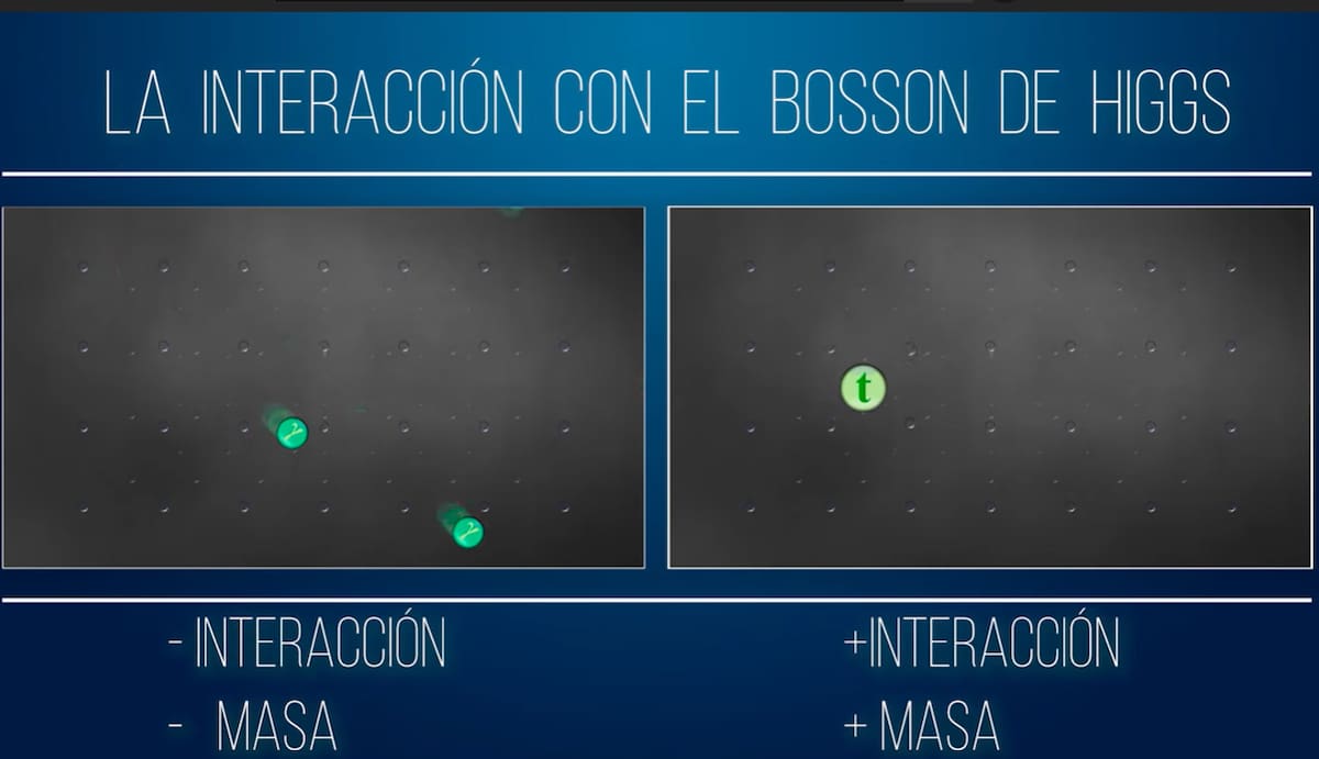 Un electrón, sin embargo, interactúa con el campo de Higgs, muy débilmente, y es por ello que tiene muy poca masa. Por su parte, el quark Top es tan masivo que tiene una enorme dificultad para moverse por el campo que interactúa mucho con el bosón de Higgs.