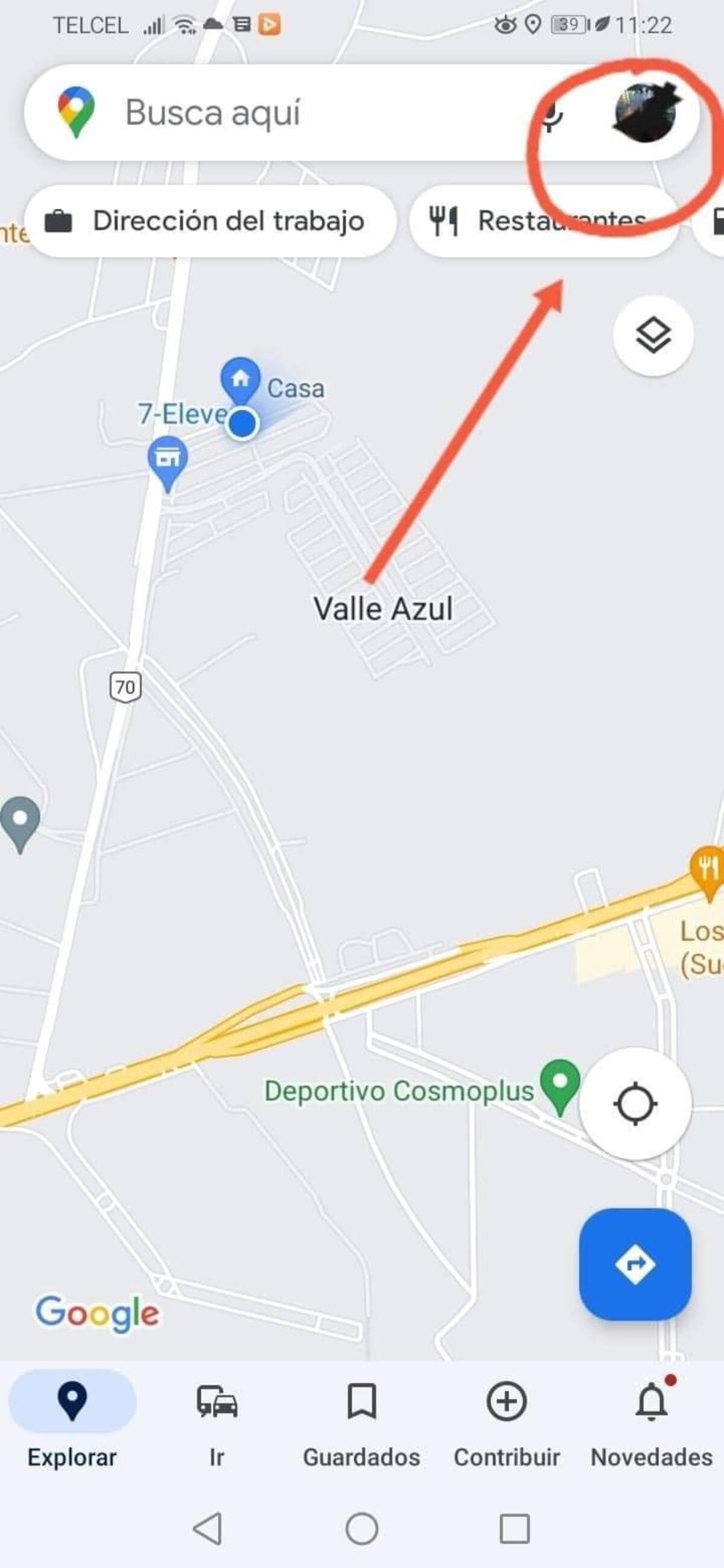 1. Abre la aplicación de Google Maps desde tu celular, inicia sesión si aun no lo has hecho, dale unos segundos para que te geolocalice desde la aplicación.