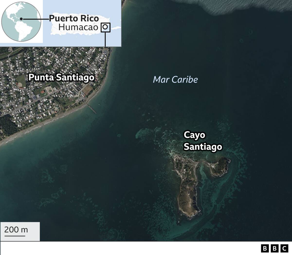 Pero nuestro encuentro ocurre a miles de kilómetros de distancia de su hábitat natural, en Cayo Santiago, una pequeña isla ubicada a 1,6 km de Humacao, en el este de Puerto Rico.