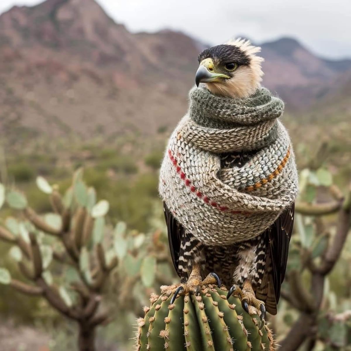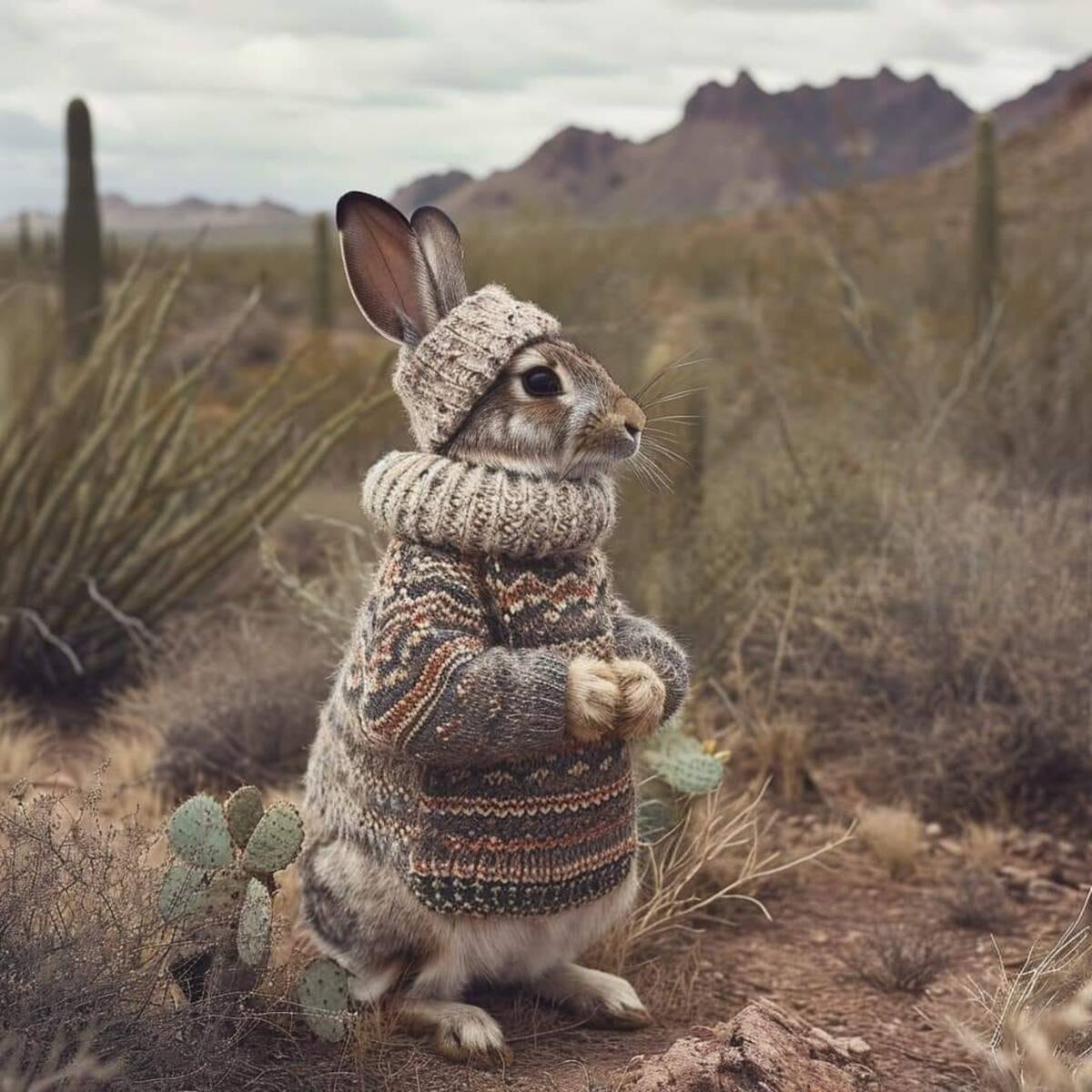 Pero ¿qué pasaría si estos animales tuvieran que enfrentarse a un clima más frío? ¿Cómo se verían con un suéter? Esta es la pregunta que ha planteado un experimento de Inteligencia Artificial realizado por la página de Facebook “Explorando con Christina Tohono”, una guía turística y promotora cultural nativa tohono o’odham que ofrece tours por el desierto de Sonora, México.