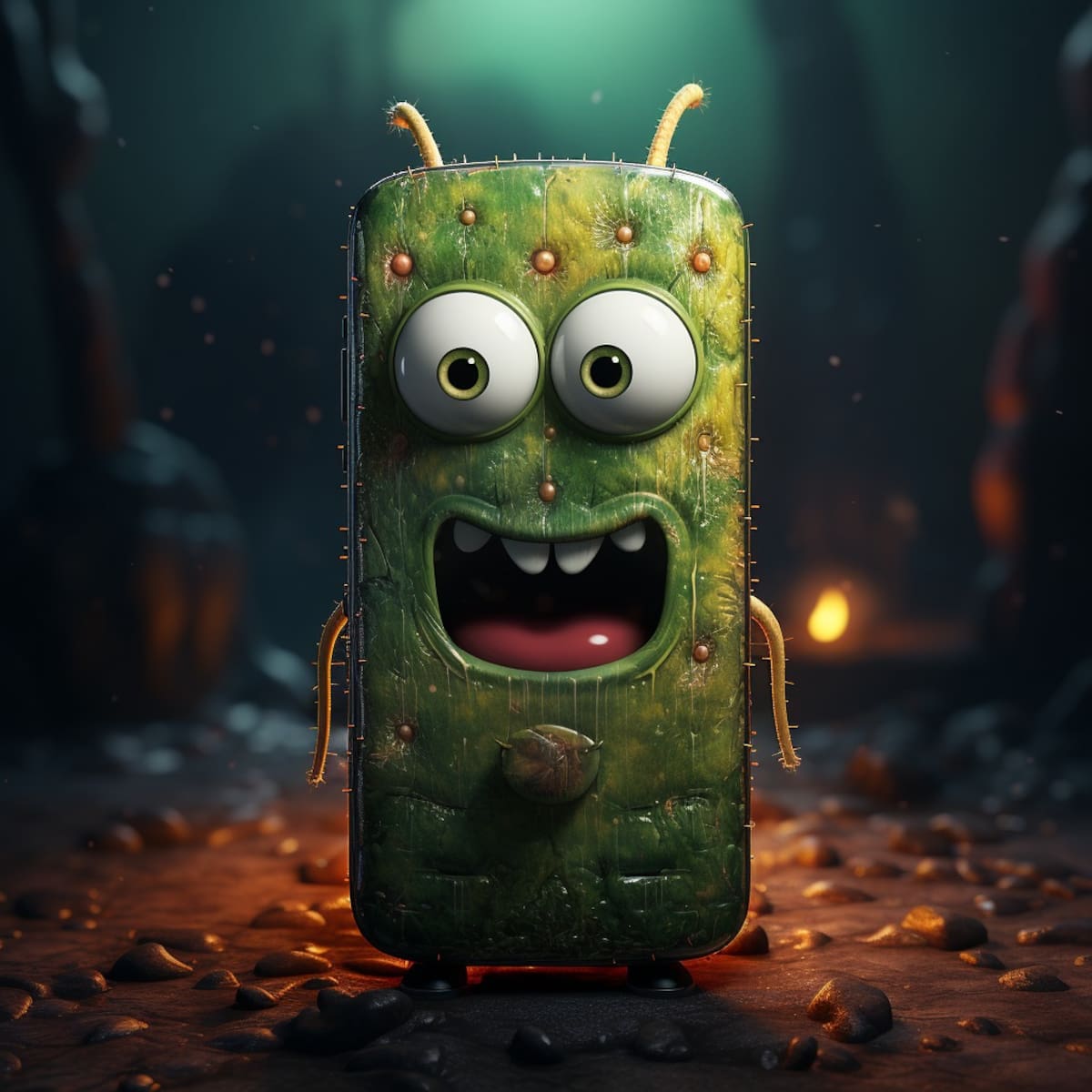 En las representaciones generadas, Plankton se muestra de color verde, con unos ojos expresivos que reflejan su astucia y determinación.