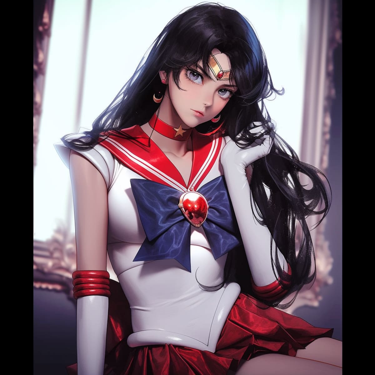 Sailor Mars es una de las Sailor Scouts que acompañan a Sailor Moon en su misión de proteger el Sistema Solar de las fuerzas del mal. Su nombre real es Rei Hino, y es una sacerdotisa del Templo Hikawa que tiene poderes psíquicos y piroquinéticos. Su uniforme es de color rojo y violeta, y su símbolo es el planeta Marte.