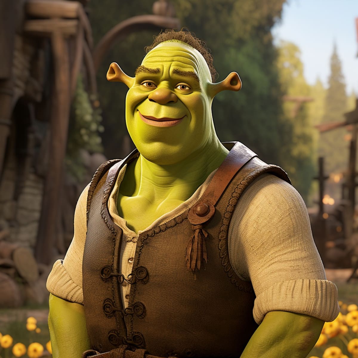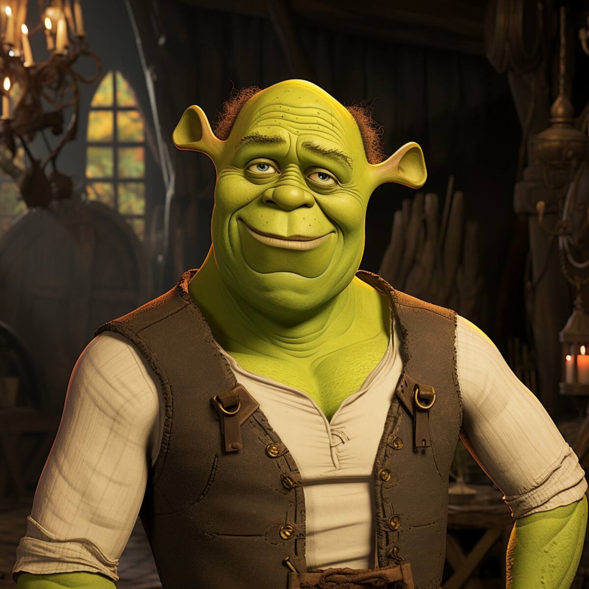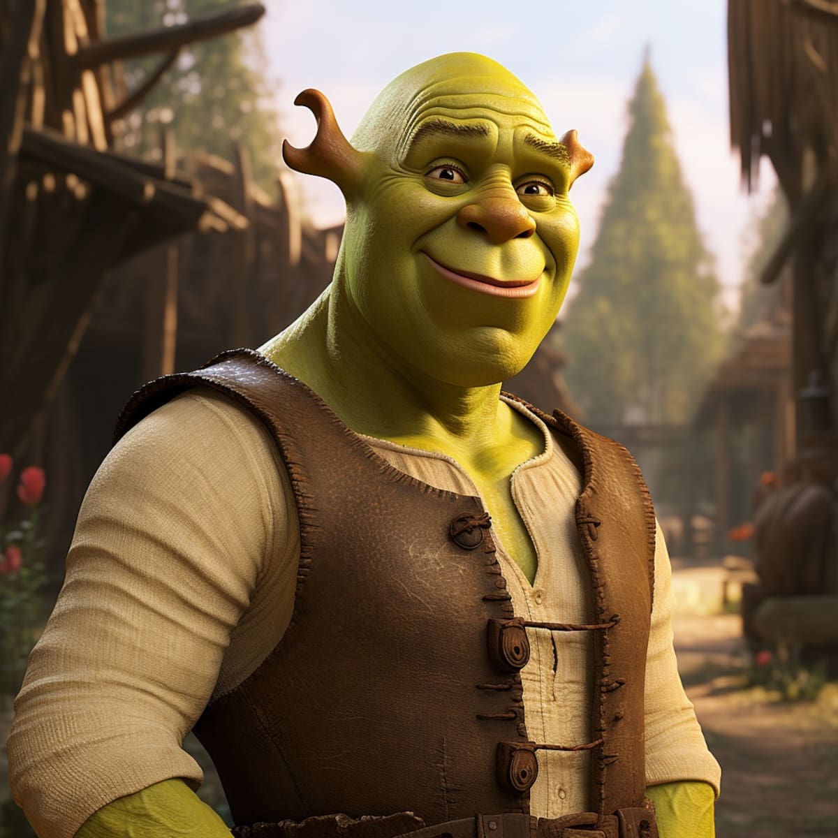 Las imágenes revelan a Shrek con brazos fuertes y pómulos resaltados, brindando una definición única a su característico rostro verde.