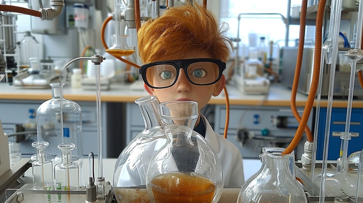 La inteligencia artificial lo visualiza enfundado en una bata blanca, evocando la imagen clásica de un químico inmerso en sus experimentos.