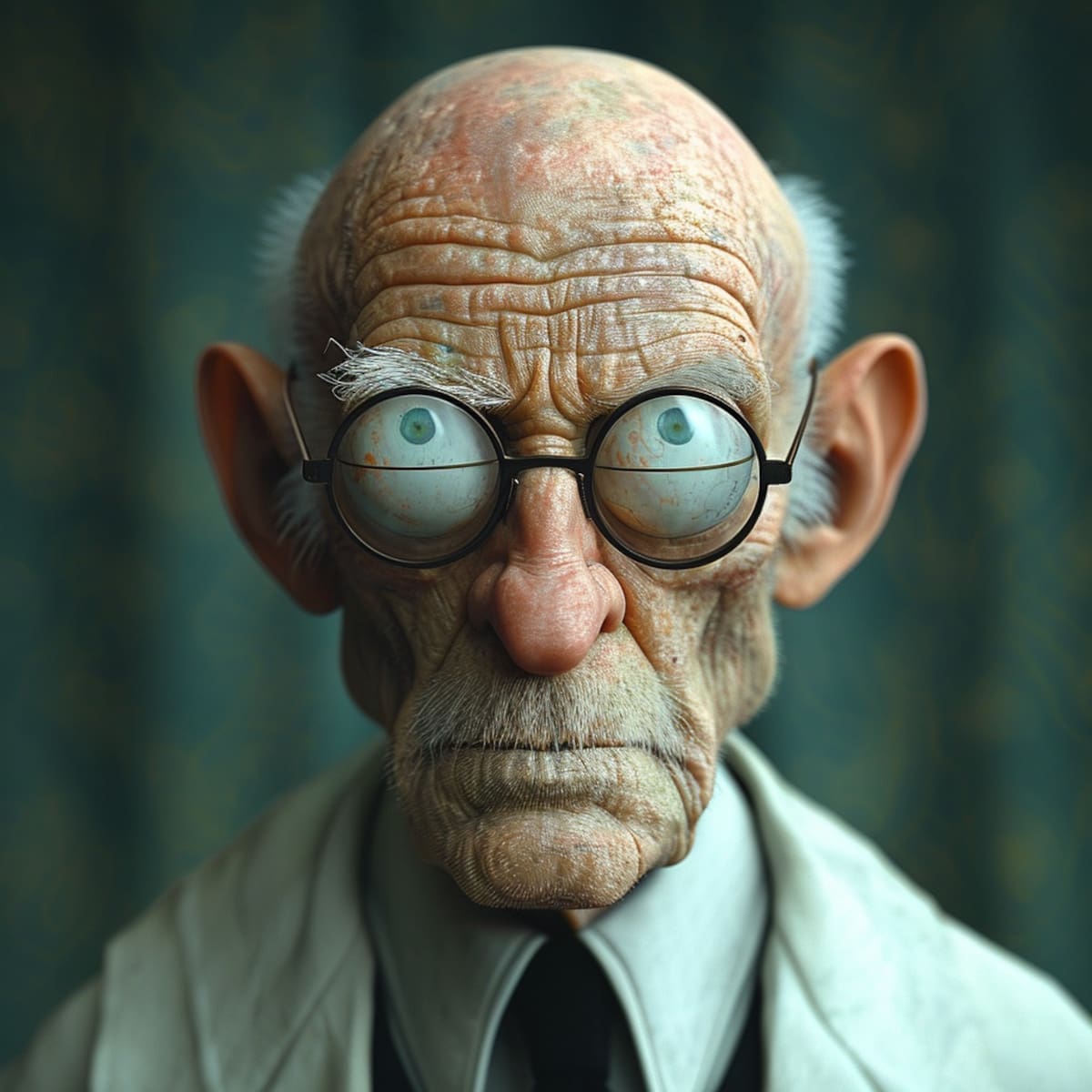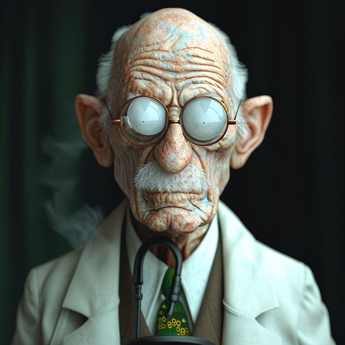 La inteligencia artificial de Midjourney ha recreado de manera sorprendente la imagen del Profesor Hubert J. Farnsworth de Futurama en la vida real.