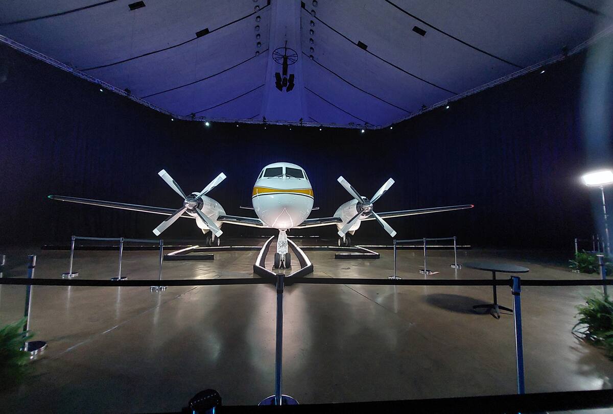Anaheim, California.- El avión Grumman Gulfstream I de Walt Disney aterriza literalmente en el D23 que hoy se celebra en el Centro de Convenciones de esta ciudad.