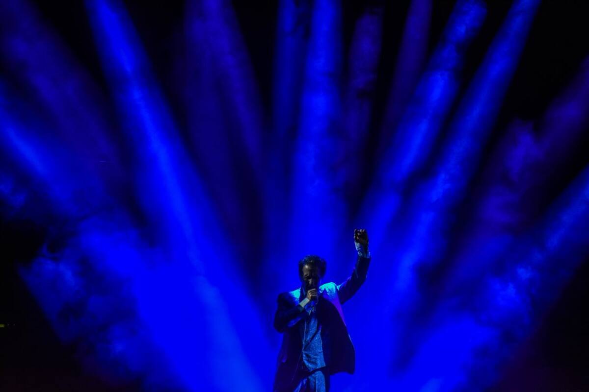 Unos minutos después de las 22:00 horas, se apagaron las luces, se encendieron las pantallas, y vistiendo elegantes trajes negros salieron al escenario para interpretar a dueto “Bella Señora” y “Bella”, poniendo al público de pie.