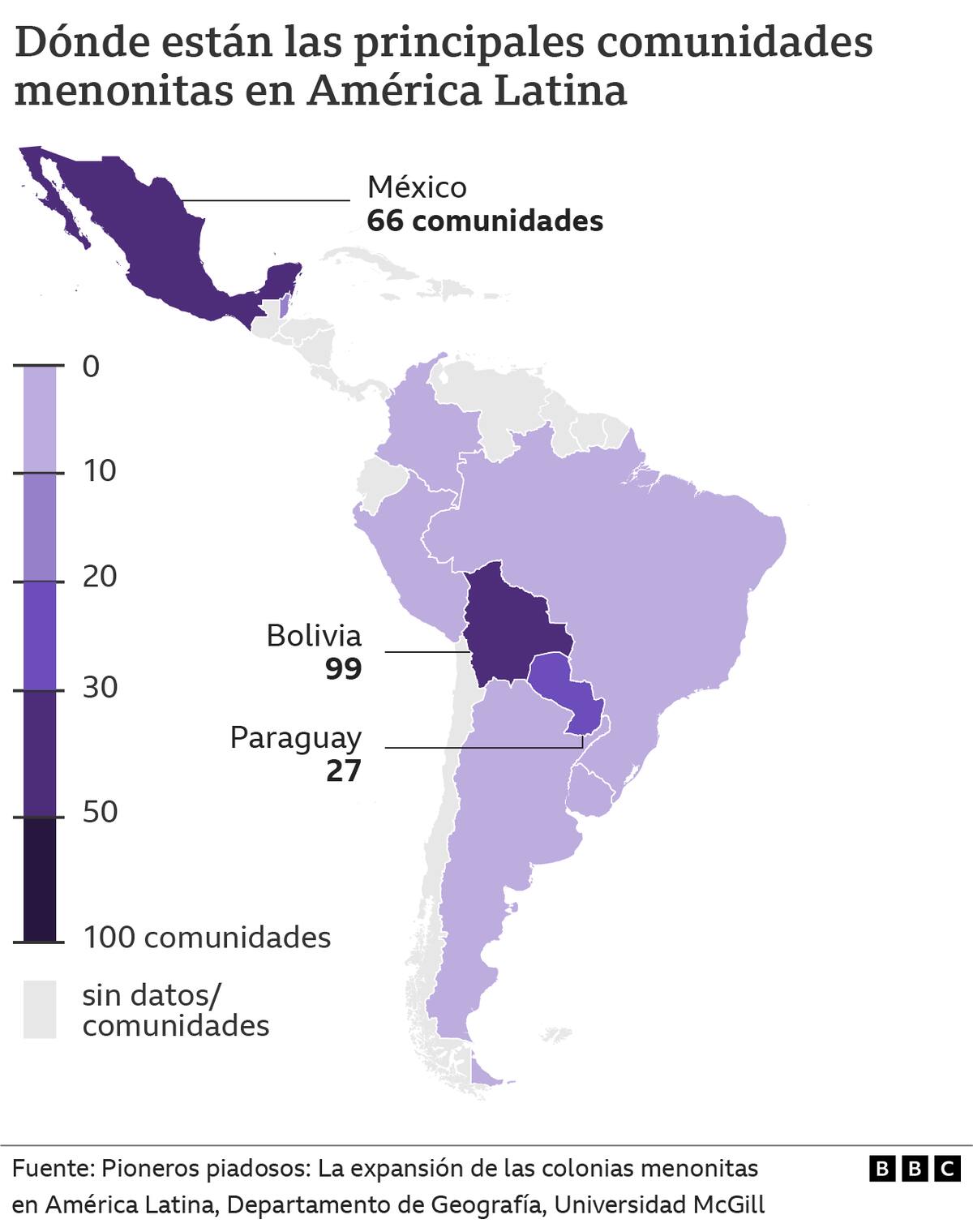 Y a partir de entonces los menonitas comenzaron a extenderse por otros países hasta conformar en la actualidad unas 214 colonias en nueve naciones del continente, explica Le Polain: Argentina, Belice, Bolivia, Colombia, México, Perú y Paraguay.