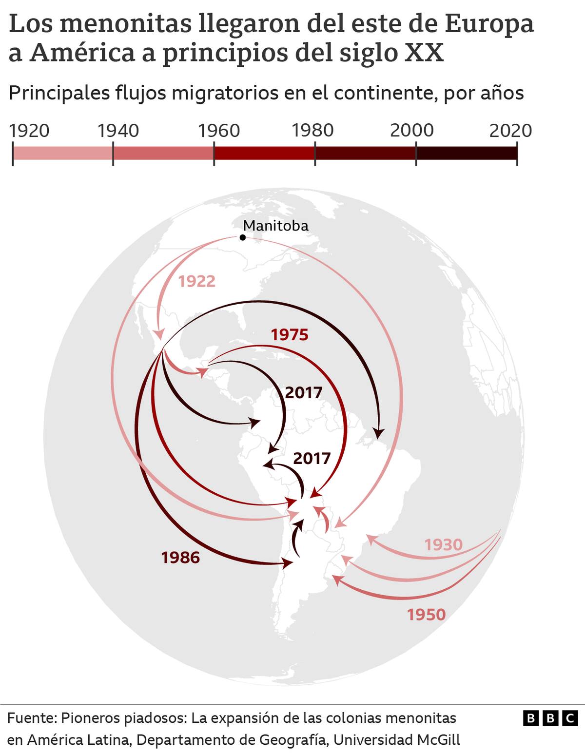 Al ver nuevamente amenazado su modo de vida por políticas del gobierno canadiense de integración cultural, se dio la primera gran migración a México y Paraguay en la década de 1920, señala Le Polain en su investigación sobre los asentamientos en América Latina.