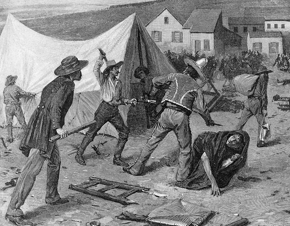 Sus asaltos incluían decapitaciones de las víctimas y en una ocasión, en el condado de Calaveras, en 1853, masacraron a decenas de personas, muchas de ellas de origen chino.