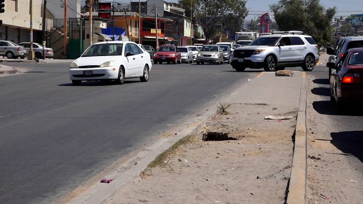 Tijuana, B.C.- Un socavón ubicado en el bulevar Casa Blanca, sobre la avenida Francisco Javier Mina, se ha convertido en el hogar de al menos tres personas en condición de calle, que han decidido vivir bajo tierra, poniendo en peligro no solo su vida, sino también la de muchas otras personas que diariamente transitan la zona este de la ciudad.