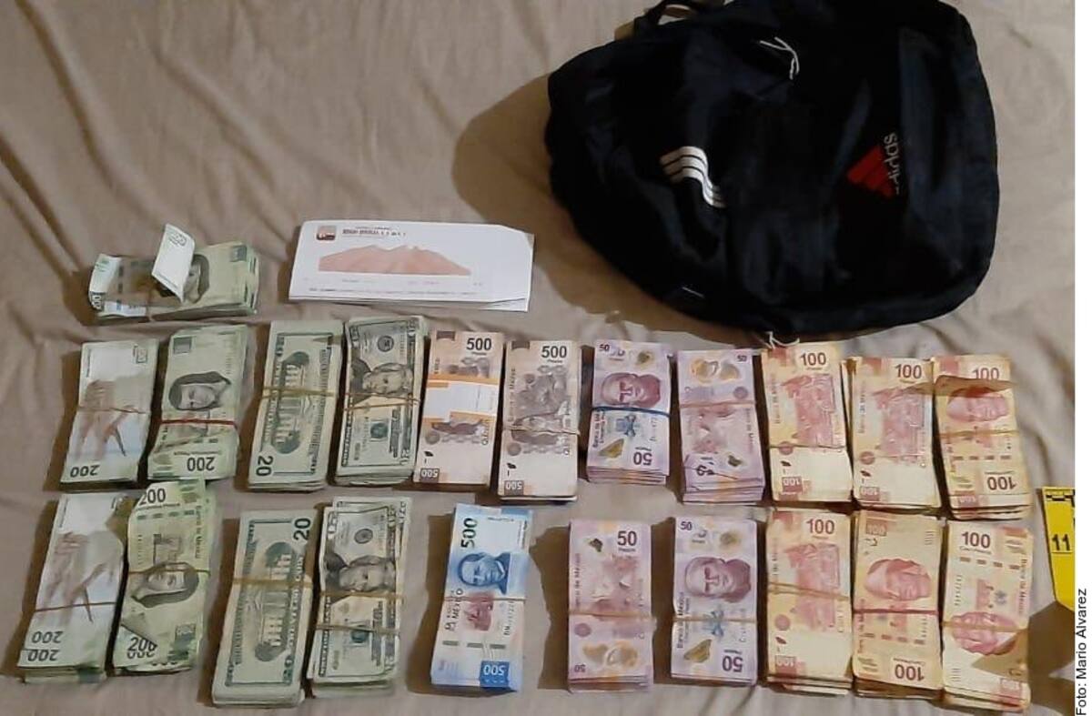 Al inspeccionar la unidad los agentes encontraron en el interior del vehículo una bolsa negra en cuyo interior llevaba, aproximadamente 277 mil pesos en moneda nacional y mil dólares en efectivo en billetes de diversas denominaciones.