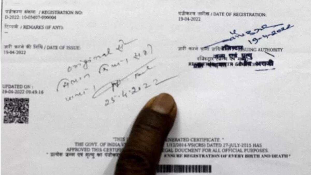 Rajaram Modi había presentado las firmas y los números de identidad biométricos de cinco personas de su aldea y la declaración jurada que decía que su hijo había muerto, y obtuvo el certificado de defunción de su hijo.