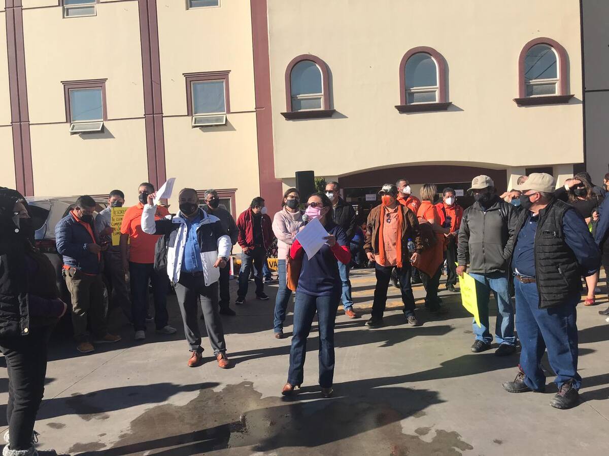 Rosarito, BC.-Trabajadores burócratas realizan una manifestación a las afueras de las oficinas del Ayuntamiento de Rosarito, exigen el cumplimiento de las condiciones del contrato colectivo de trabajo.
