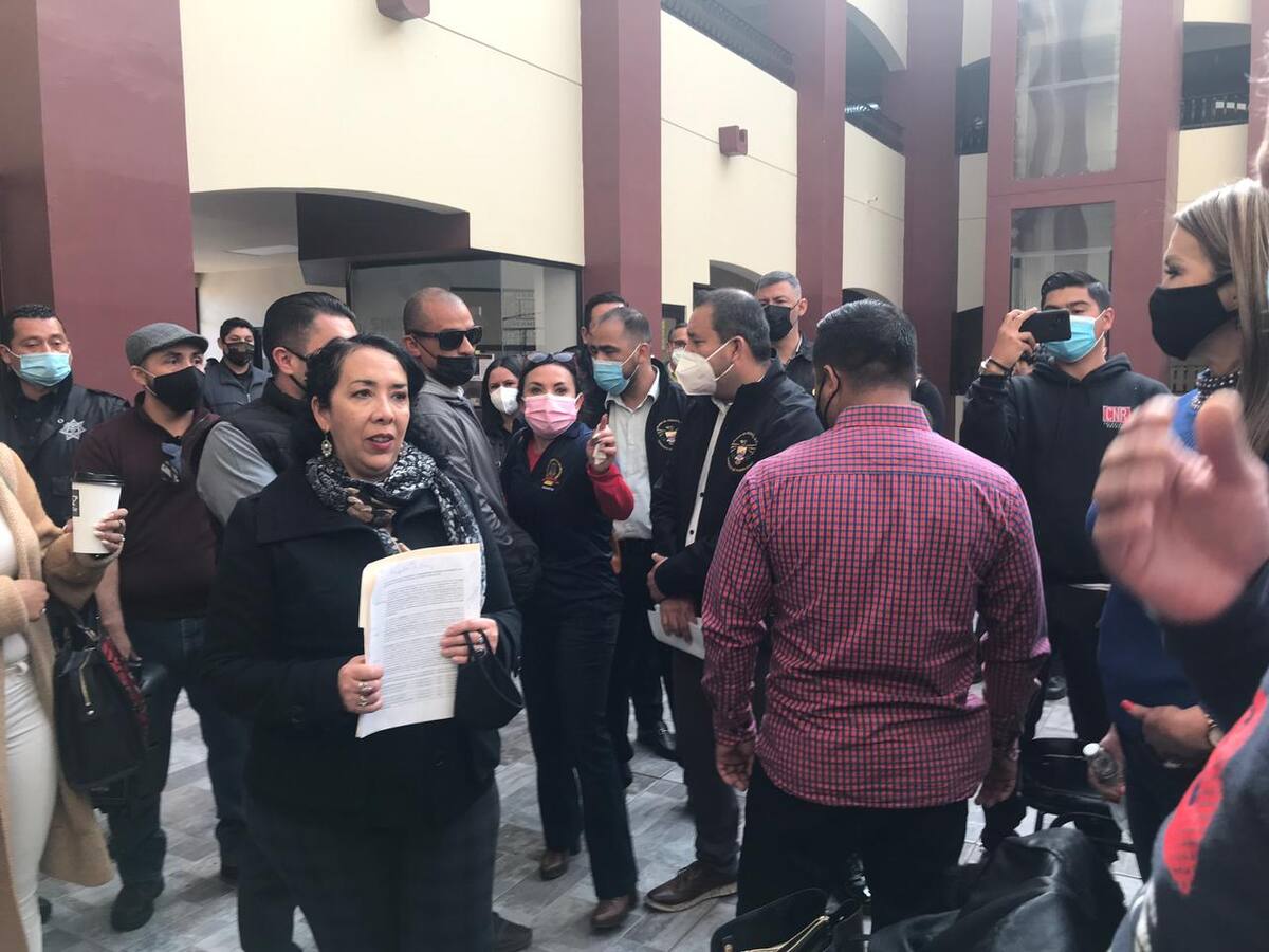 Desde las 7:00 horas de este jueves, al menos un centenar de personas sindicalizadas no solo del ayuntamiento de Rosarito sino de otros municipios del Estado, llegaron con pancartas en mano y lanzaron consignas exigiendo sus que se cumpla con las demandas, como el pago del seguro a familiares de personal de base que ya falleció.
