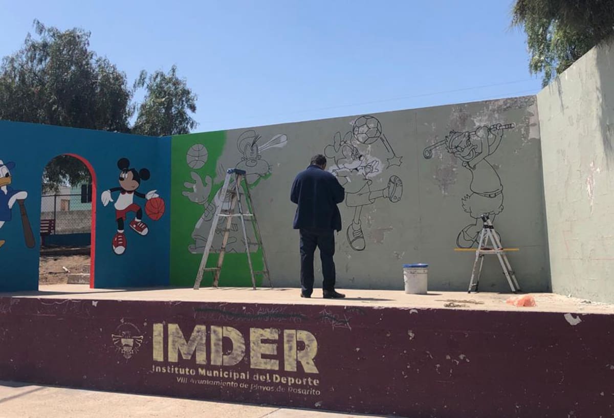 Rosarito, BC.- Para mantener libre del graffiti al parque de Lomas de Rosarito, se dibujan murales con personajes de Walt Disney, a fin de motivar a los usuarios a conservar el parque limpio y en buen estado, explicó Armando Consuelo, encargado del lugar.