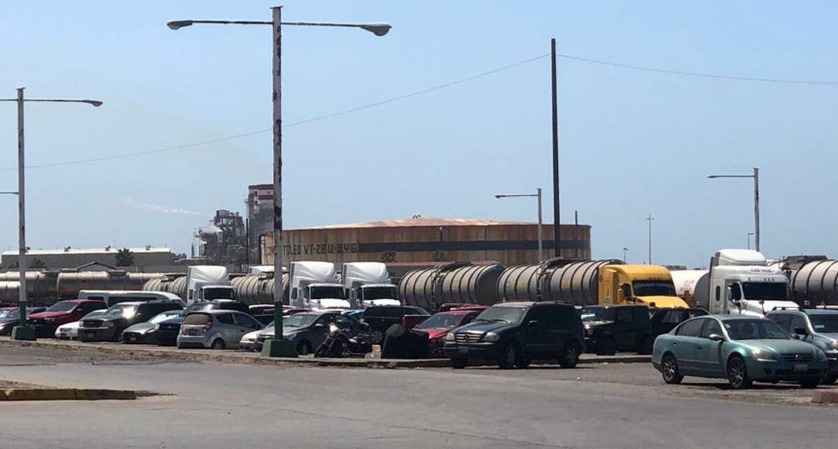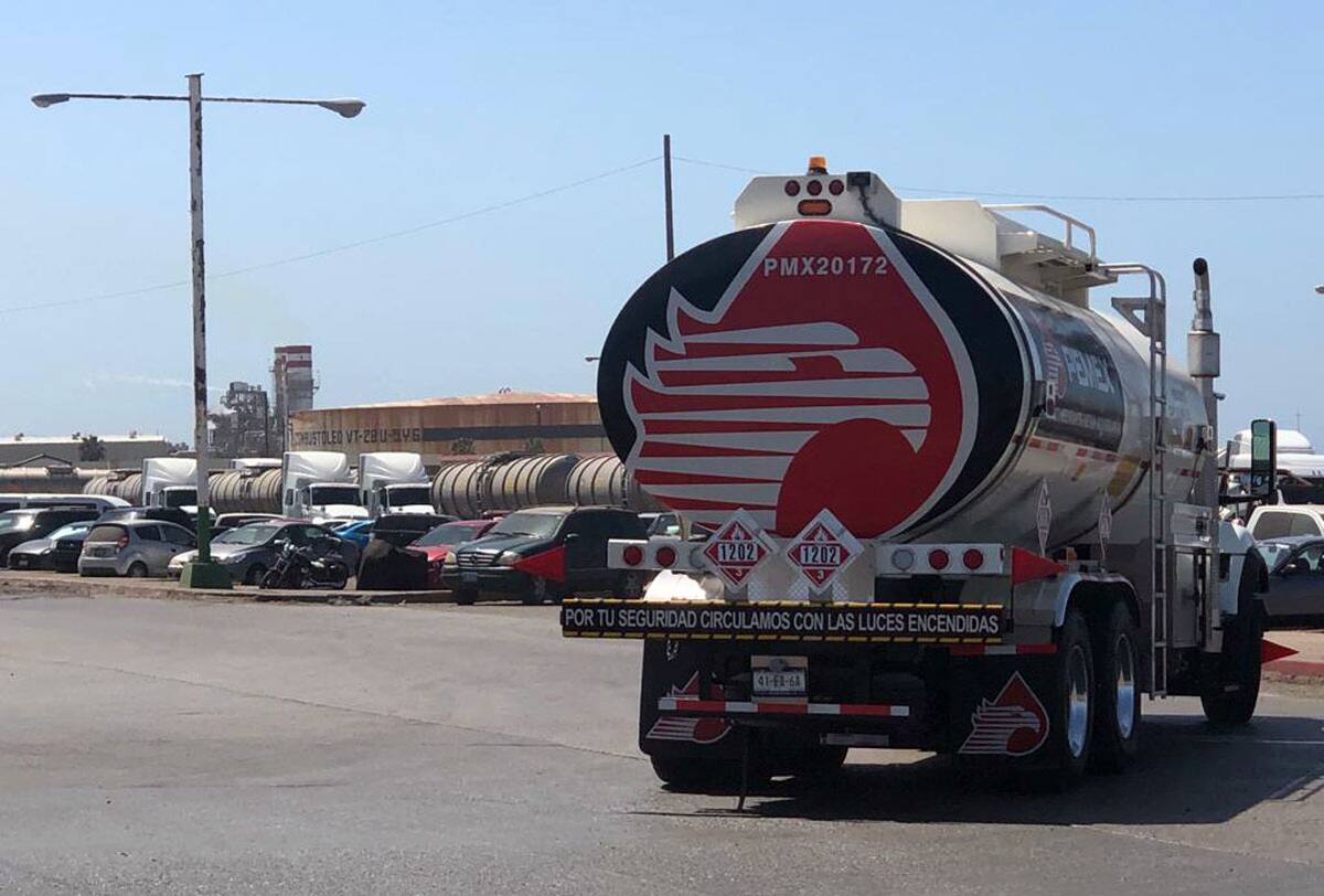 Larga espera de choferes para cargar combustible en terminal de Pemex en Rosarito