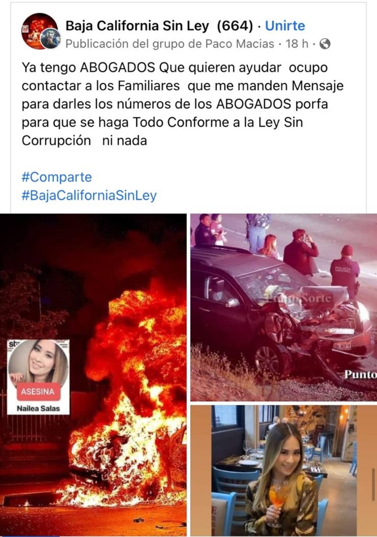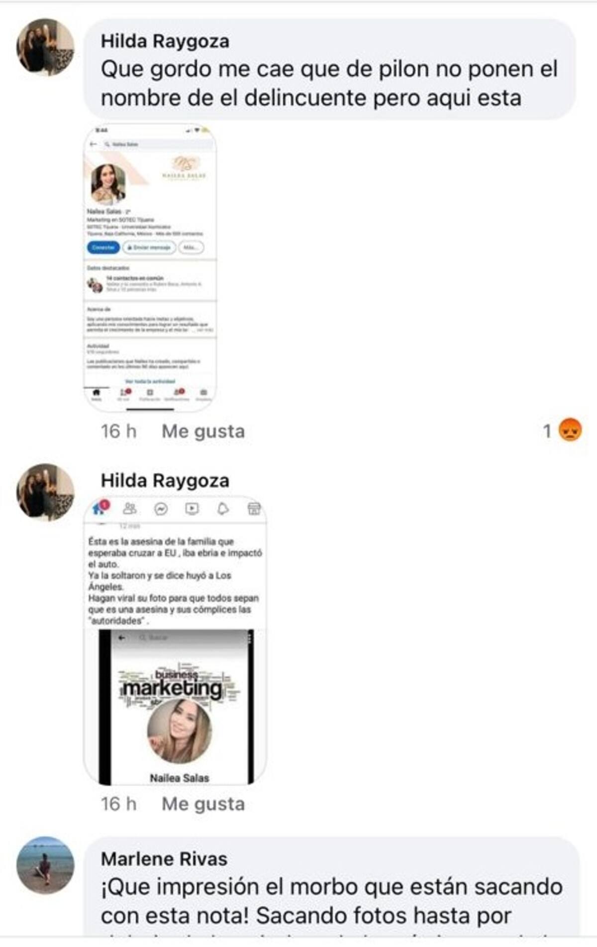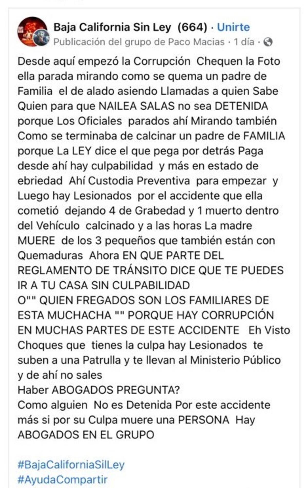 Tijuana, BC.- Usuarios de redes sociales arremetieron contra Nailea “N”, la presunta responsable del accidente que cobró la vida de dos padres de familia el pasado domingo.