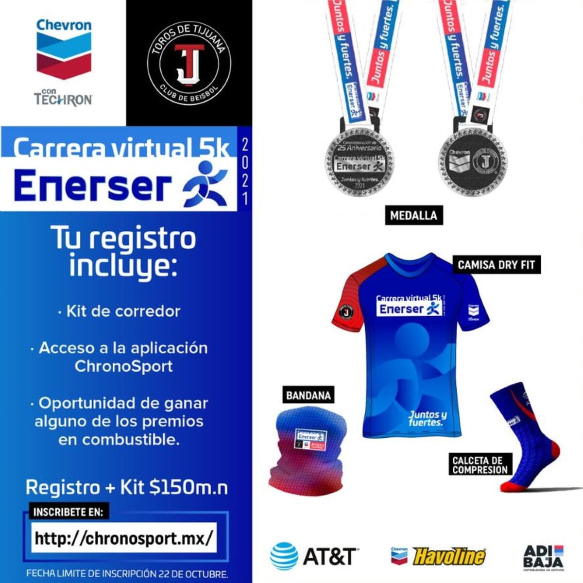 Tijuana, B.C.- A pesar de ser en forma virtual, la carrera que organizan Enerser y Toros de Tijuana promete ser toda una experiencia para la comunidad runner.