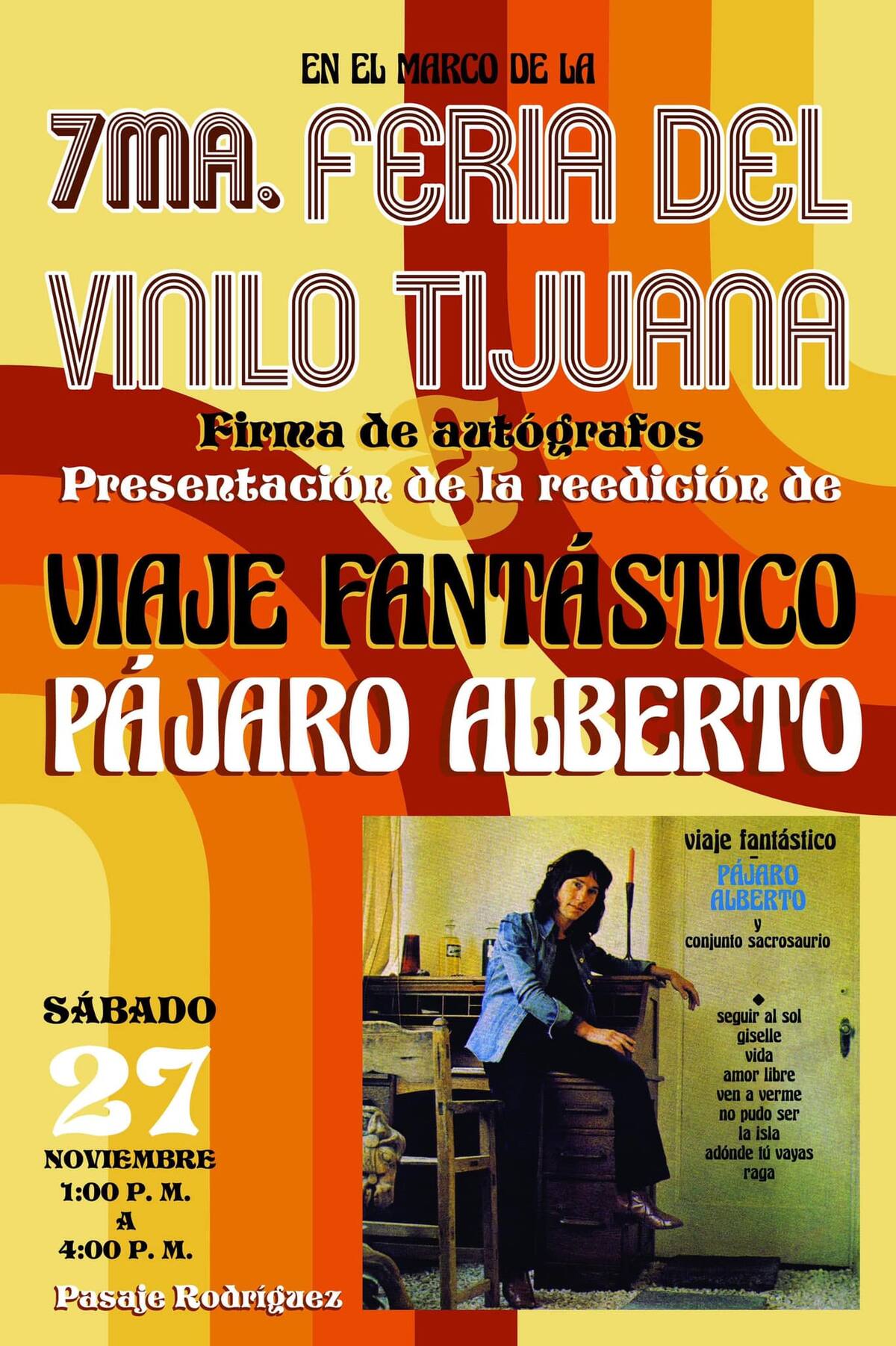 Tijuana, B.C.- Como parte de las celebraciones de la reedición de su mítico álbum, "Viaje Fantásto", 47 años después de su publicación original, Pájaro Alberto estará presente en la Feria del Vinilo Tijuana este fin de semana.