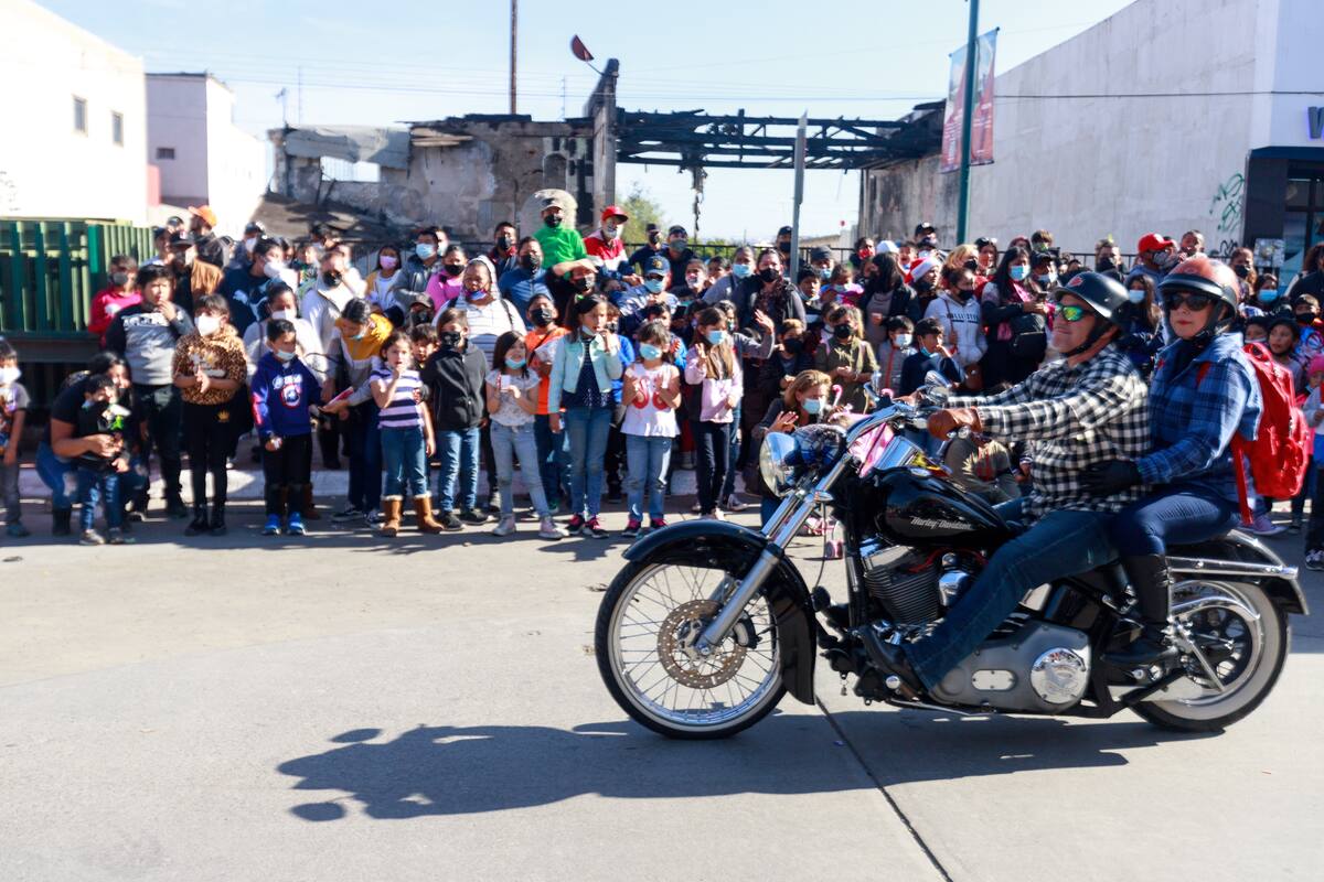 Los niños también se tomaron fotografías con los motociclistas disfrazados de Santa Claus, quienes lucieron sus espectaculares vehículos desde la colonia Independencia, Revolución y otros sitios turísticos de la ciudad.