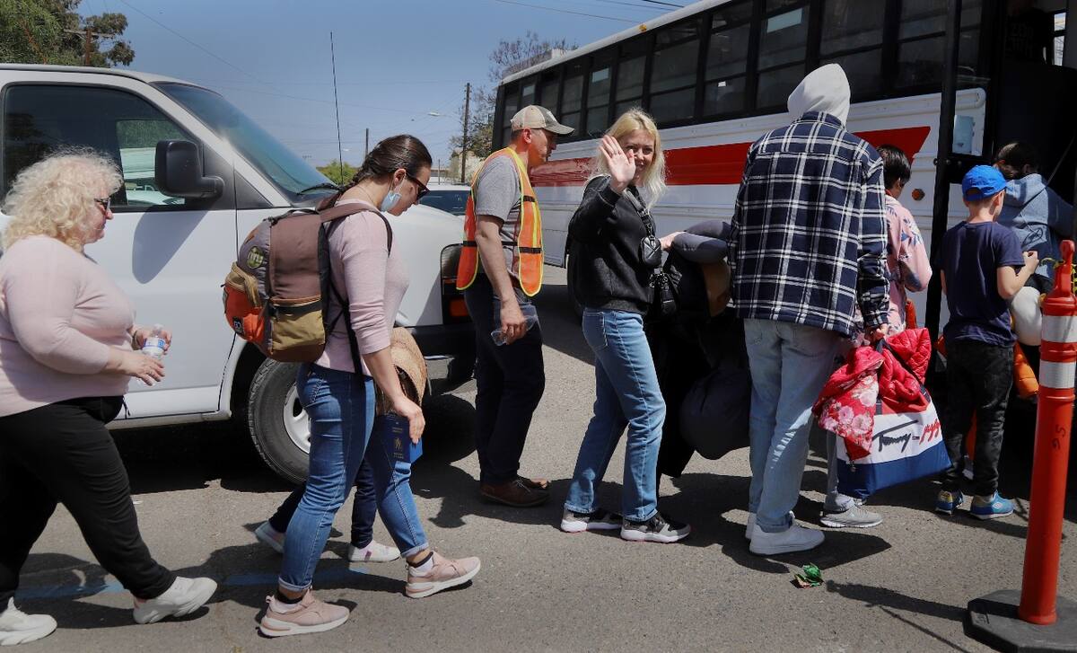 Junto con más de 150 personas subió a uno de los camiones que los trasladan a la garita de El Chaparral, en donde esperan diariamente atender a 570 ucranianos que buscan el refugio de la Unión Americana.