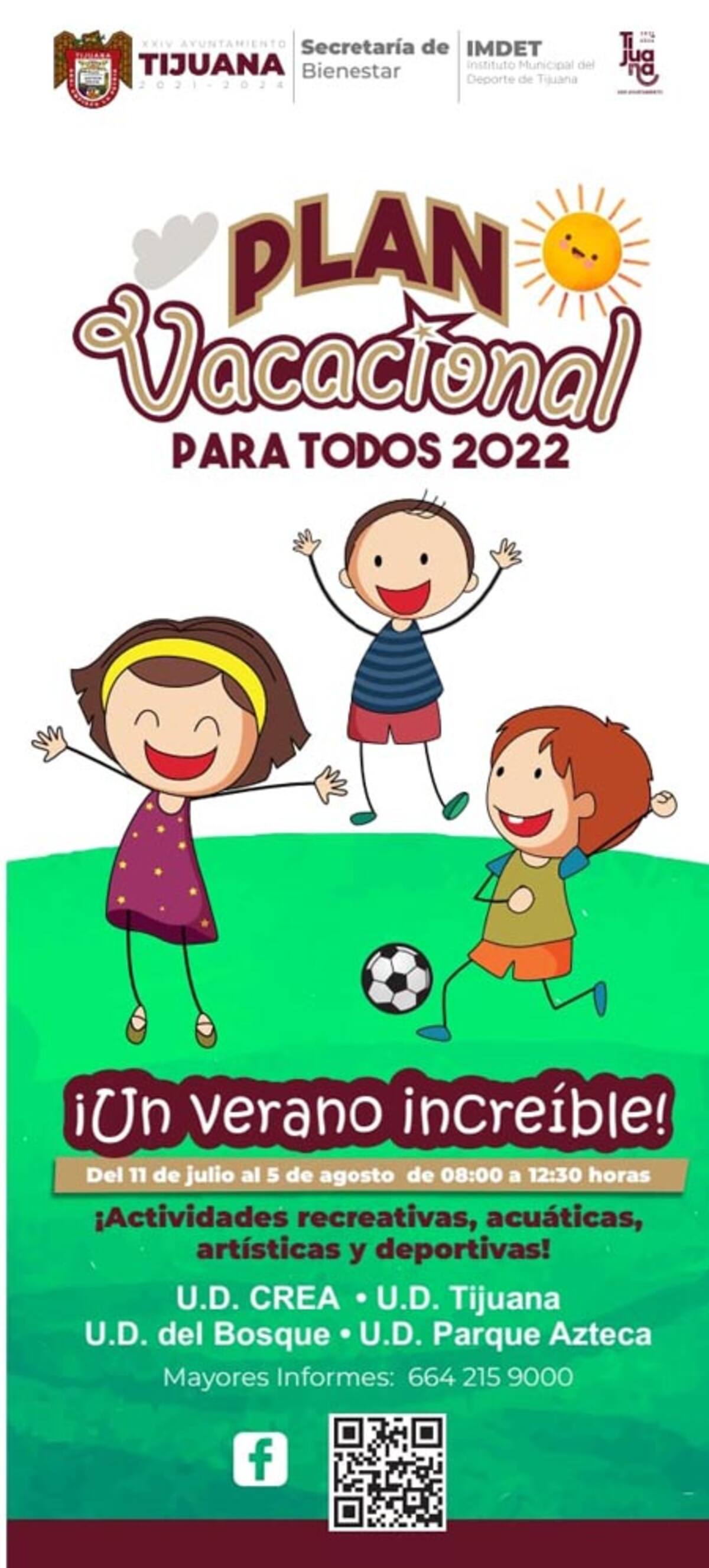 Tijuana, B.C.- El Instituto Municipal del Deporte de Tijuana (Imdet) invitó a las familias a inscribir a sus hijos en el campamento de verano, en donde además de socializar con otros menores de edad, practicarán diferentes reportes.