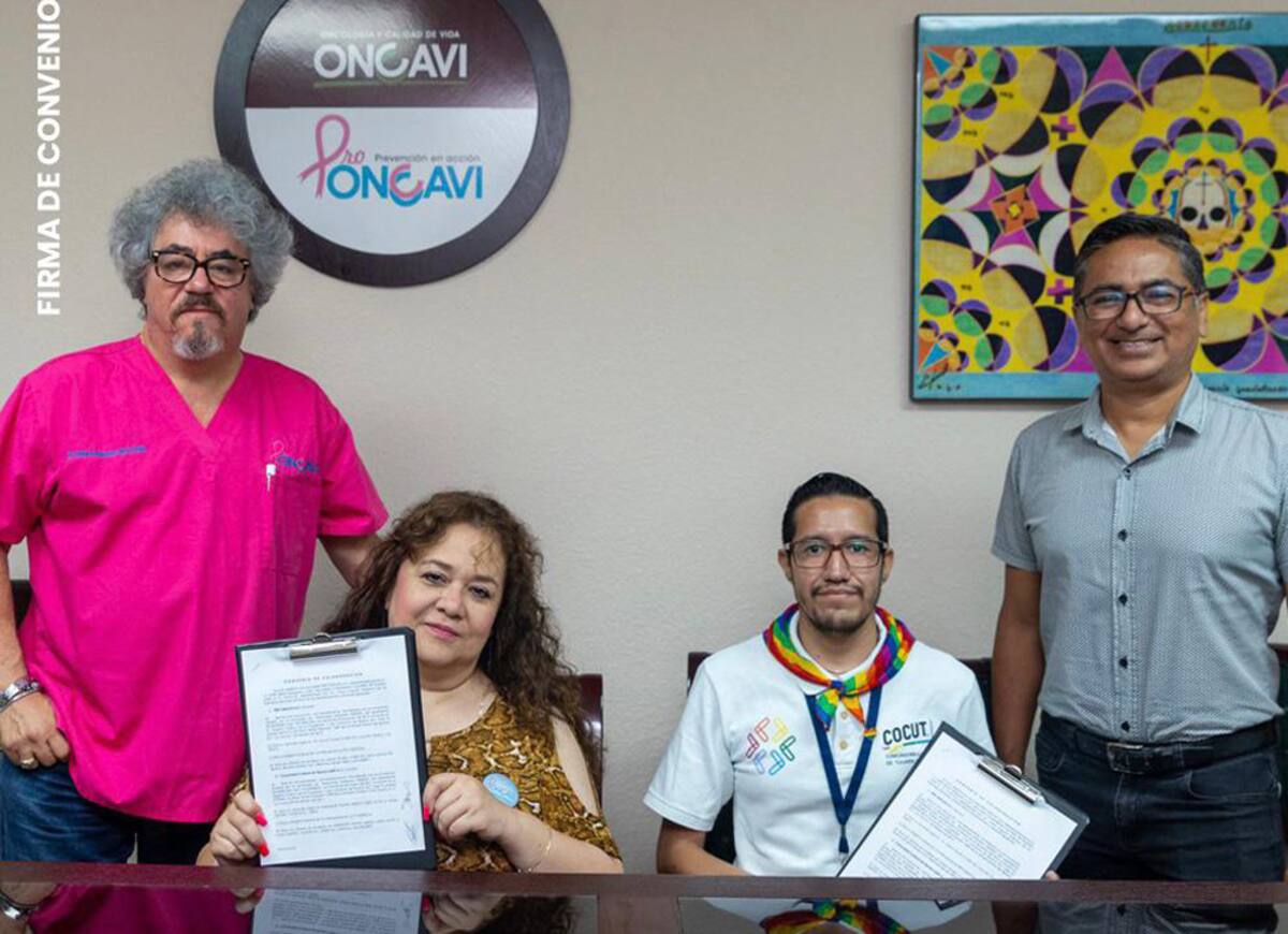 Tijuana, BC.- Un convenio de colaboración para llevar a cabo acciones de educación y prevención en materia de cáncer fue firmado por Pro Oncavi A.C. (Pro Oncología y Calidad de Vida) y la Comunidad Cultural de Tijuana LGBTI A.C. (Cocut) el pasado fin de semana.