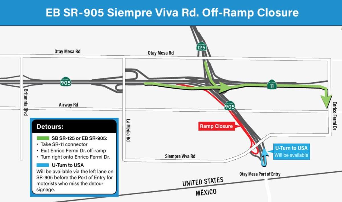 De acuerdo a las autoridades estatales de California, las personas que no tengan la intención de viajar a México desde San Diego, tendrán que usar una salida antes de la ruta estatal 905 (SR-905).