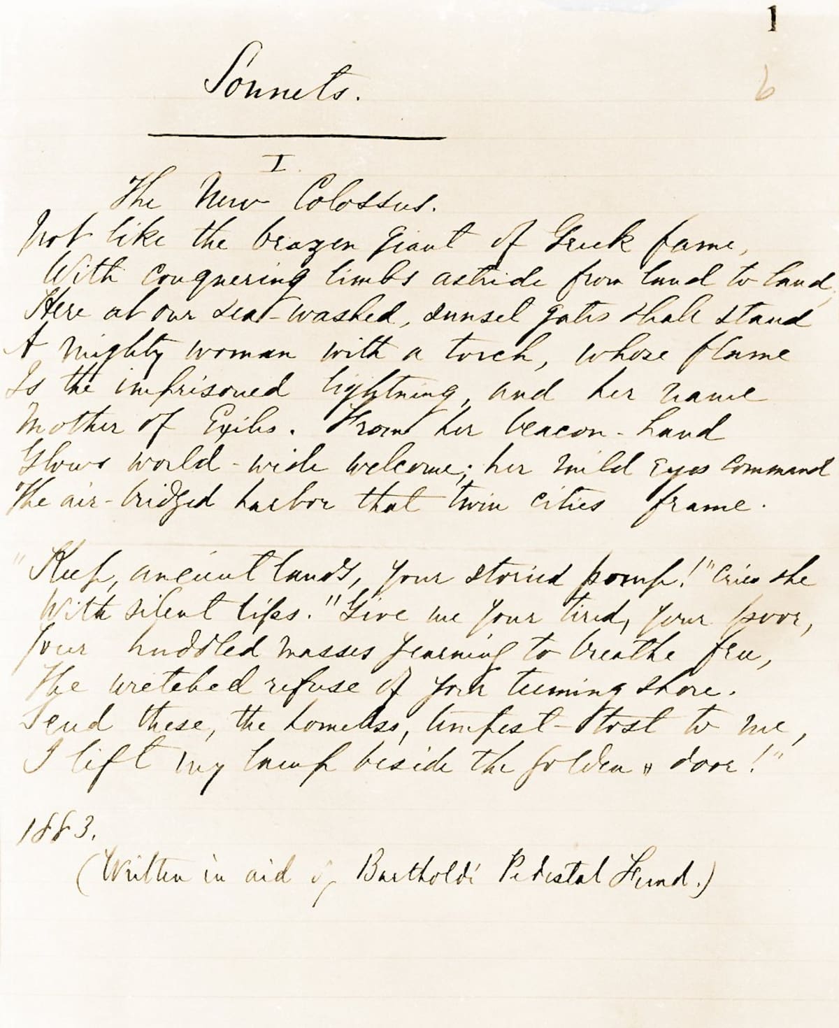 En 1883 le pidieron que escribiera un poema para ayudar a recaudar dinero para el pedestal de la Estatua de la Libertad.
