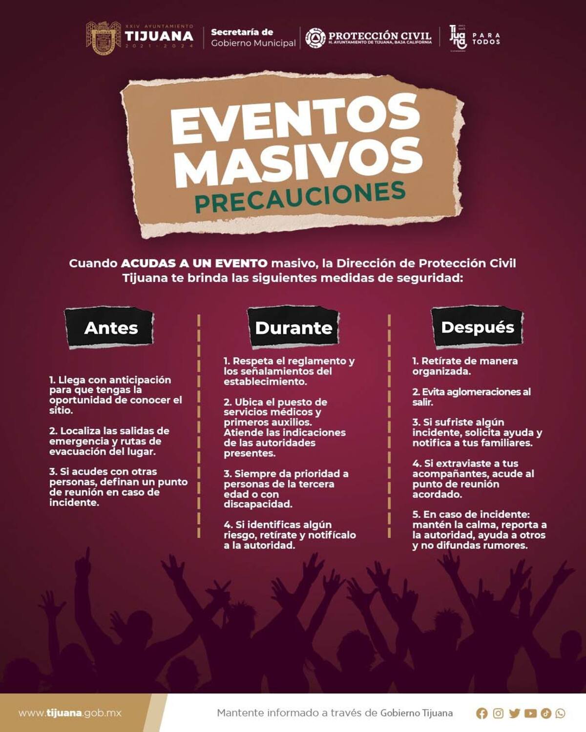 Protección Civil Tijuana da recomendaciones al acudir a eventos masivos